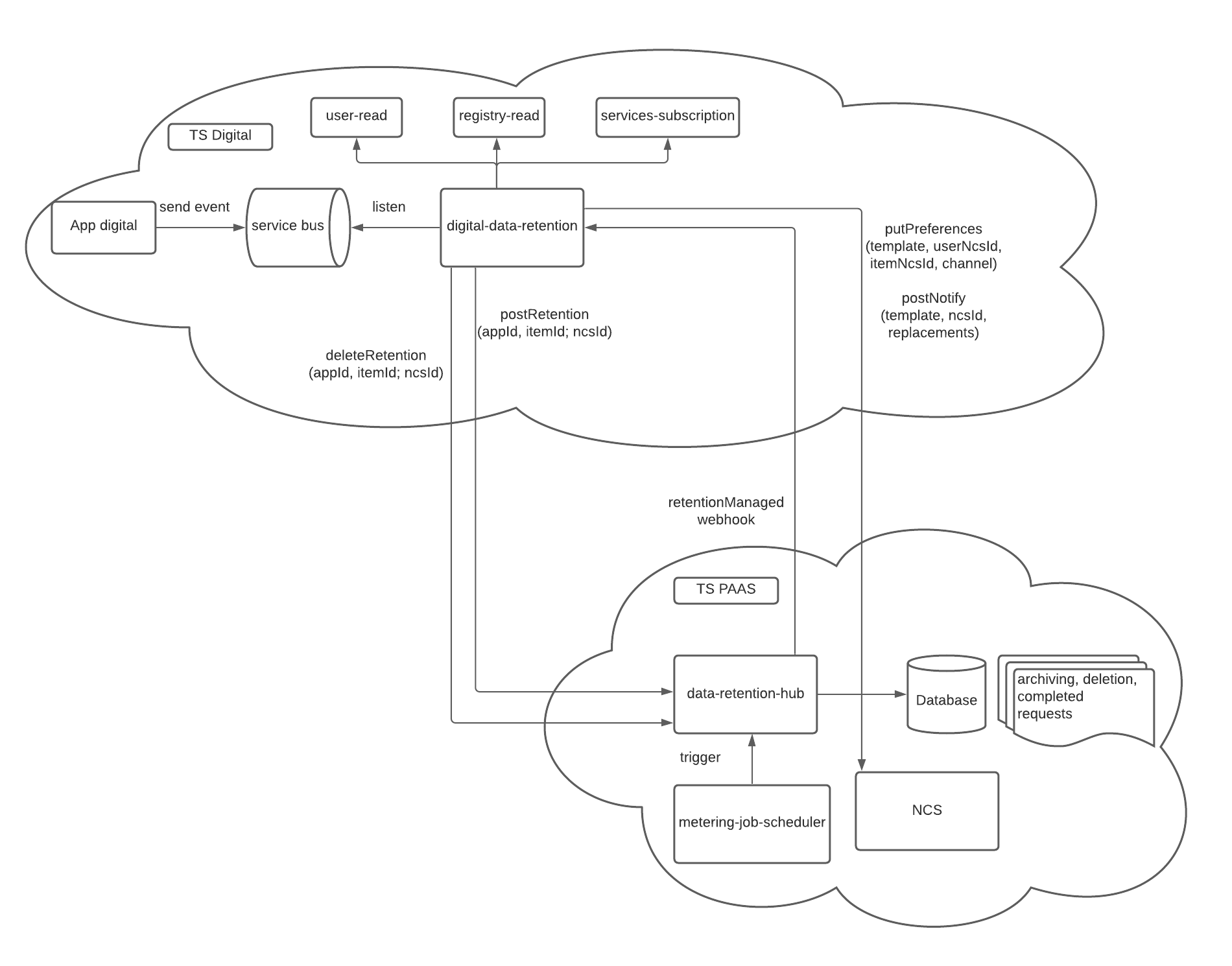 E’ un listener che legge dal service bus i messaggi relativi agli eventi di disattivazione o di messa in read only di un servizio ed esegue una richiesta di archiviazione dei dati. Dopo che l’archiviazione dati è stata effettuata, questo servizio si occupa anche di inviare le varie notifiche agli utenti - Data-retention-hub